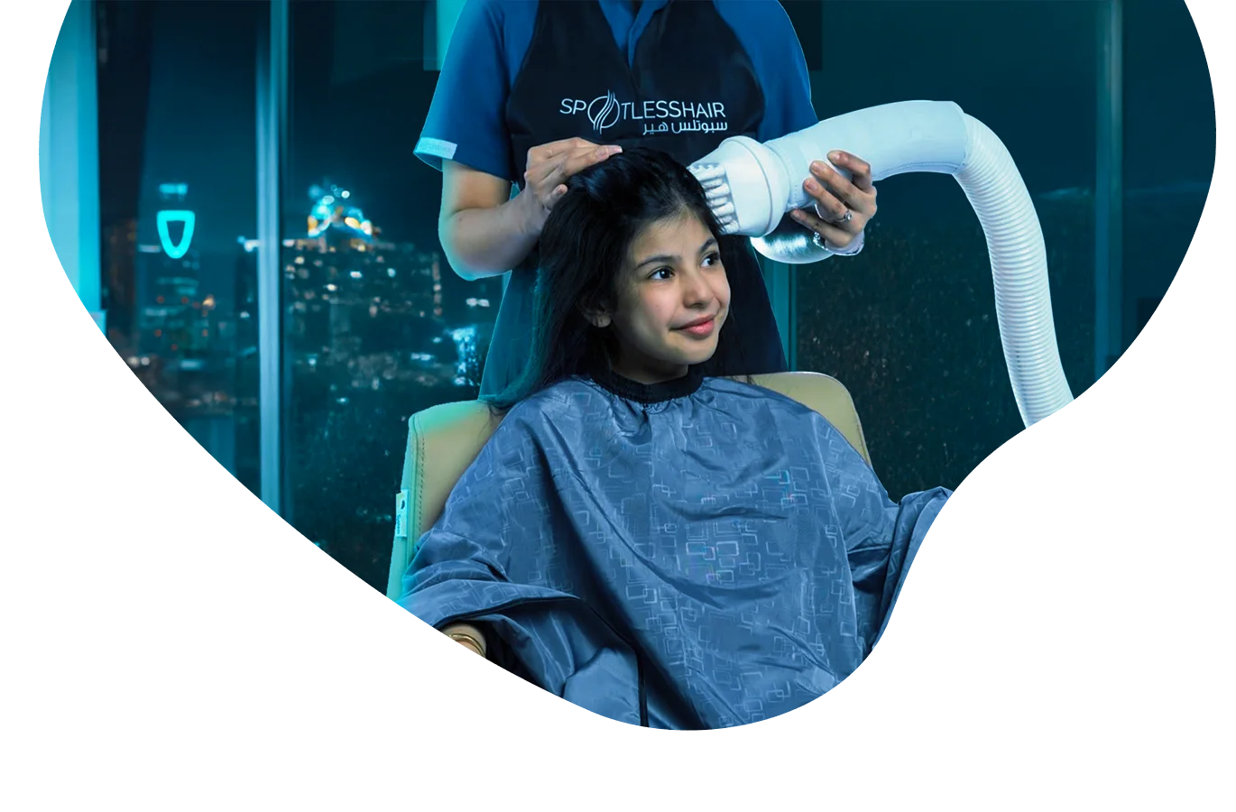 يستخدم مركز سبوتلس هير لعلاج القمل جهازًا طبيًا مخصّصًا لعلاج القمل والصيبان يعمل بتقنية بالهواء الدافئ بدرجة حرارة آمنة تساعد على تجفيف القمل وبيضه والقضاء عليه. الجهاز معتمد من هيئة الغذاء والدواء (SFDA) وآمن للأطفال والحوامل ولا يعتمد على أي مواد كيميائية.